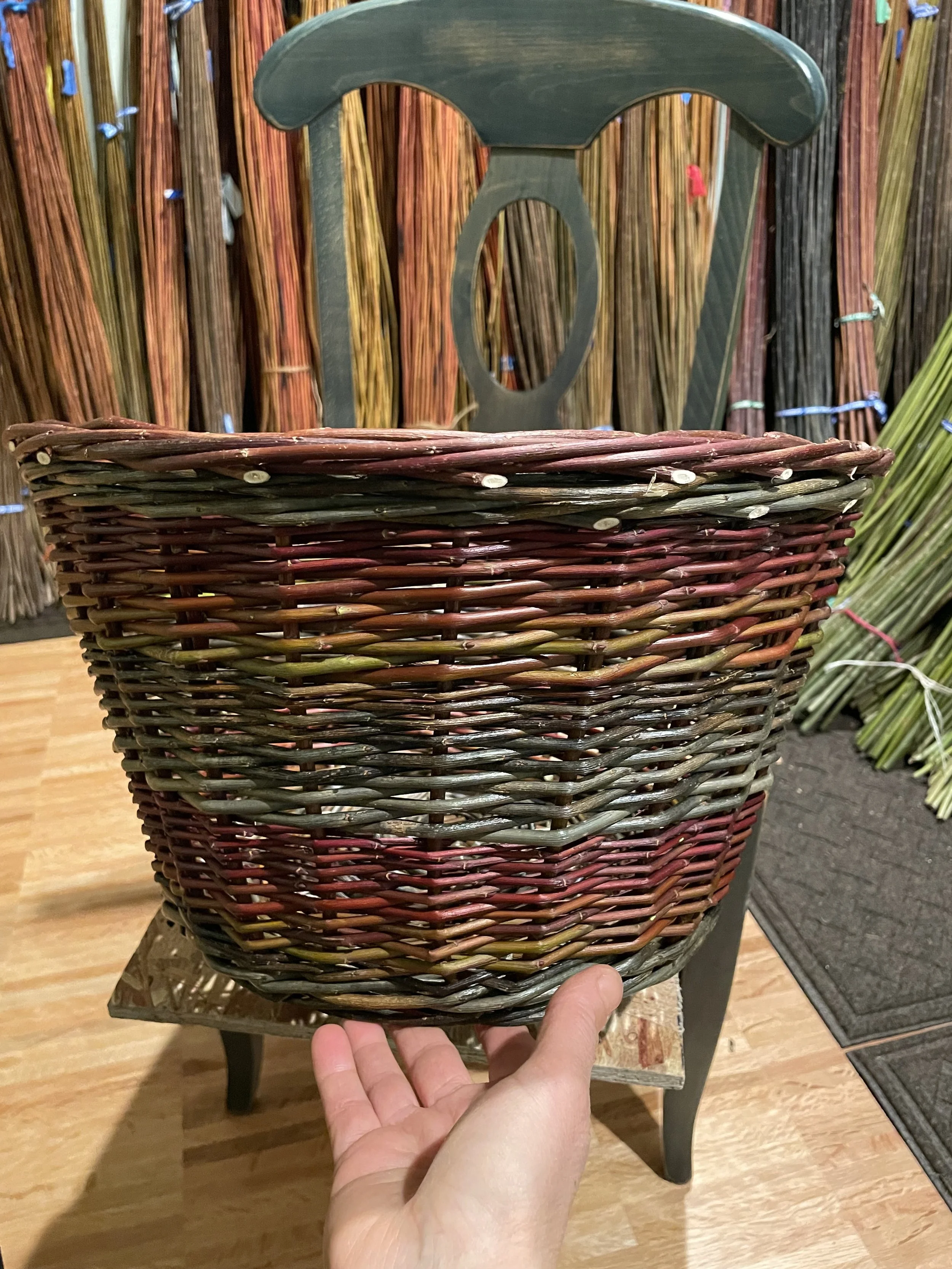 When we first started, it was hard to find enough basket-quality willow with which to practice. There were not many growers here in the PNW and the rods people were selling could be as much as $18/lb. We have access to local, wild willows, but they were not all suitable for basket-making or could not be used for all parts of a basket. We are learning, however, to develop a stronger relationship with the wild ones here and are excited to see what that brings.